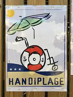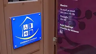 L'État français a mis en place depuis 2003, un label national « Tourisme et Handicap» et « Destination pour tous » délivré aux professionnels du tourisme offrant un équipement adapté à une où plusieurs familles de handicap[11].