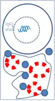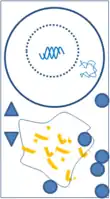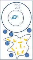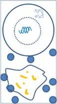L'ARN viral utilise un transporteur, nommé vecteur, pour pénétrer à l'intérieur de la cellule : les liposomes. Petites capsules de graisse de tailles nanométriques (quelques milliardièmes de mètre), ils libèrent leur matériel génétique après avoir fusionné avec la membrane plasmique interposée entre l'intérieur de la cellule et le milieu extracellulaire ; à l'issue de quoi la cellule prend à son compte la fraction d'ARN viral et traduit la protéine correspondant à cette fraction[4].