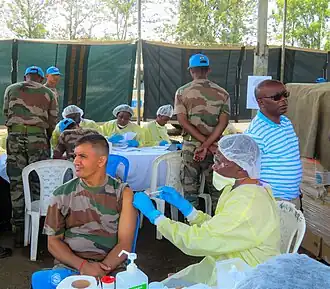 Lors de l'épidémie de 2018 au Congo, plus de cent mille personnes ont été vaccinées (VSV-EBOV), dont près de trente mille agents de santé de première ligne. Selon l'OMS, les données préliminaires donnent une efficacité de 88 à 97 %[28],[35].