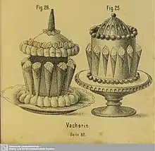 Le vacherin est un entremets d'origine française[1] composé d'une enveloppe de meringue ou de pâte d'amandes, fourré de crème glacée ou de sorbet, parfois de fruits confits, et masqué de crème chantilly.