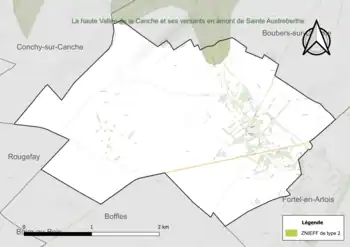 Le territoire communal comprend une ZNIEFF de type 2[Note 2] : la haute vallée de la Canche et ses versants en amont de Sainte-Austreberthe qui se situe dans le pays du Ternois. Il offre un relief de coteau abrupt au Nord et des pentes douces au Sud. Le fond de vallée est constitué de pâturages et de zones de cultures. Les versants les plus pentus et inaccessibles accueillent des boisements[11].