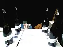Ces vins, revêtus de l'étiquette reproduisant l'affiche du Festival, sont proposés, lors des soirs de premières, dans les grands restaurants d'Avignon, et à la boutique du festival installée place de l’Horloge[18].