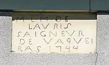 Au début des années 1760, le jeune marquis de Sade s'est amouraché de la délurée Laure de Lauris-Castellane. Mais son père, syndic de la noblesse du Comtat Venaissin et seigneur de Vacqueyras, s’oppose à ce mariage. Les deux familles se connaissaient portant bien, puisque dès 1701, Joseph-Mathias de Lauris-Castellane avait déjà été syndic de la noblesse, suivi, en 1704, de Gaspard-François de Sade.