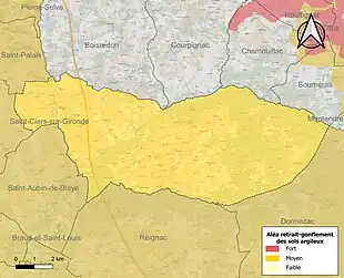 Le retrait-gonflement des sols argileux est susceptible d'engendrer des dommages importants aux bâtiments en cas d’alternance de périodes de sécheresse et de pluie. 99,8 % de la superficie communale est en aléa moyen ou fort (67,4 % au niveau départemental et 48,5 % au niveau national). Sur les 912 bâtiments dénombrés sur la commune en 2019, 912 sont en aléa moyen ou fort, soit 100 %, à comparer aux 84 % au niveau départemental et 54 % au niveau national. Une cartographie de l'exposition du territoire national au retrait gonflement des sols argileux est disponible sur le site du BRGM[18],[19].