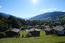 Le val d'Arly est une vallée alpine de Savoie et Haute-Savoie située entre la chaîne des Aravis au nord-ouest, le massif du Beaufortain au sud-est, le massif des Bauges à l'ouest, la vallée de l'Arve au nord-est et la combe de Savoie au sud-ouest, faisant de lui une section du sillon alpin[3],[4]. Façonné par le glacier de l'Arve qui y envoyait une diffluence lors des maximums glaciaires, le haut val d'Arly adopte un profil en auge qui contraste avec les petites vallées latérales plus escarpées et encaissées du massif du Beaufortain et des contreforts de la chaîne des Aravis. Sa position à 500 à 600 mètres au-dessus des grandes vallées auxquelles il est raccordé — via les gorges de l'Arly vers la combe de Savoie au sud-ouest et via un coteau pour la vallée de l'Arve au nord-est — le qualifie de « suspendu ».