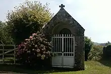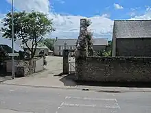 - Manoir du Marais des XVIe – XVIIe siècles. L'ensemble fortifié qui a ses façades sur cour en granit, date de 1567[35]. On y accède par une porte double, charretière en plein cintre et piétonne en arc surbaissé. Dans l'angle de la porte charretière subsiste un reste de crénelage à meurtrières, et une arquebusière défend l'entrée. Une échauguette montée sur contrefort orne un angle de la tour carrée (XVIe et XVIIe siècles)[36] bâtie près de l'entrée et percée de plusieurs meurtrières. Les logis en équerre, avec des fenêtres ouvragées, comportaient au moins deux lucarnes, dont une seule subsiste, décorée avec un fronton caractéristique de la fin du XVIe siècle. Pour certains auteurs, l'origine de son nom vient d'un de ses habitants, le sieur Maresq, pour d'autres de sa situation près du marais[37].