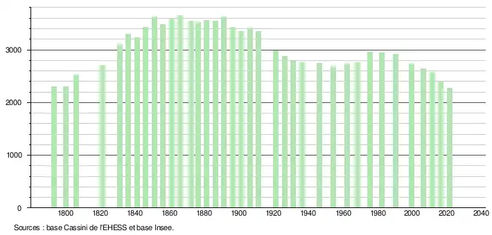 2 271 hab. (2021 en diminution de 7,42 % par rapport à 2015)