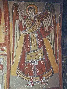 - Kırkdamaltı Kilisesi (« église aux quarante toits », également appelée « église Saint-Georges »). Une inscription permet de dater l'église entre 1283 et 1295, ce qui en fait le dernier exemple connu d'architecture chrétienne dans la vallée d'Ihlara jusqu'à la renaissance de la construction d'églises par les Grecs de Cappadoce au XIXe siècle. Les peintures de l'église comprennent des représentations de saint Georges, une peinture du consul byzantin Basileos Giagupes, qui était également un émir et est représenté en costume seldjoukide avec sa femme Thamar, une princesse géorgienne . L'inscription susmentionnée mentionne à la fois le sultan seldjoukide Mesud II et l'empereur byzantin Andronic II Paléologue, signe qu'à cette date une sorte de coexistence pacifique entre chrétiens et musulmans était possible en Cappadoce.