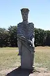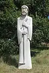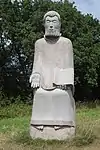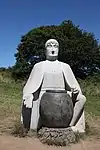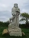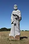 | 26 | Miliau | 2012 | Norbert Le Gall | Statue de 3,50 m en granit de Maël-Pestivien. Décapité par son frère Rivode, le saint est représenté en céphalophore, avec à la place de la tête un ove en granite poli. Ses attributs traditionnels, le sceptre et l'épée de sa décollation, ne sont pas figurés[67]. | ![]() |