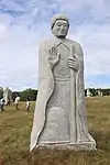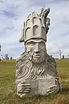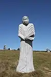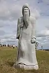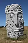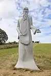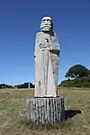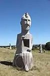 | 44 | Maudez[82] | 2014 | Kito | Statue de 4,50 m et de 20 t en granit de Bignan. Saint le plus populaire de Bretagne après saint Yves (une soixantaine de chapelles portent son nom dans le Trégor, le Léon, le Penthièvre et en Cornouaille), il est représenté avec un escalier circulaire enroulé autour du corps jusqu'à se transformer en un livre. L'escalier de la connaissance et le livre sont les symboles du saint[83]. | ![]() |