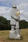 | 45 | Merec | 2014 | Kito | Statue de 4,50 m et de 18 t en granit gris-bleu de Louvigné. Saint breton obscur, la légende veut qu’il soit l’un des septuplés, les 7 saints Mérec, ayant la particularité d’avoir été nourris par une biche (ou une chèvre selon les versions) après avoir été abandonnés par leur mère[84]. Ils sont souvent confondus avec les Sept saints fondateurs de la Bretagne[85]. Kito choisit de représenter le saint sous les traits du Petit Prince de Saint-Exupéry, en kabic et pantalon marin, tenant dans les bras un renard à la queue touffue, animal auquel se sont attachés ces deux personnages[86]. | ![]() |