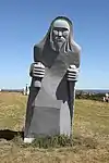 | 56 | Goustan[98] | 2015 | Kito et Kévin Kito | Statue de 5,20 m et 18 t en granit gris-bleu de Louvigné. Saint Goustan, le patron des marins et des pêcheurs, abandonné sur Hoëdic, a survécu, selon la légende, grâce à un poisson miraculeux qui le nourrissait. La statue de Kito porte un immense poisson dans ses bras frêles et son socle est constitué d'algues, desquelles émergent son corps et celui de son poisson nourricier[99]. | ![]() |