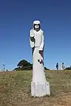 | 43 | Keo | 2014 | Jacques Dumas | Statue de 4,10 m en granit de Huelgoat. Saint Keo, originaire du pays de Galles, serait le fondateur de la première chapelle de Koat-Keo. La statue est orientée vers cet édifice[81]. | ![]() |