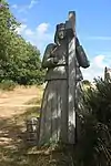 | 52 | Ivy | 2015 | Seenu Shanmugam et Vivien Gamba (assistant) | Statue de 3,80 m en granit de Huelgoat. Prêchant l'humilité, prônant le travail manuel, le moine Ivy s'habille de peaux de bêtes et se nourrit si sommairement qu'il est surnommé « Waterman », le buveur d'eau. Très populaire, fondateur d'une douzaine de monastères (dont peut-être la célèbre abbaye de Glastonbury), il est, avant tout, le grand saint patron du pays de Galles. Par son influence, il a donné un véritable style au monachisme breton[93]. | ![]() |