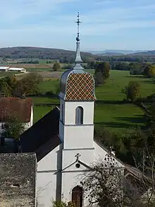 - L'église Saint-Martin du XVIe siècle, reconstruite en 1853, avec son clocher comtois.