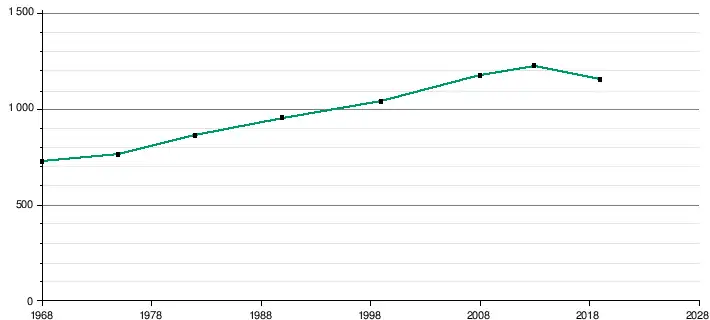 - Population municipale légale en vigueur au 1er janvier 2024, millésimée 2021, définie dans les limites territoriales en vigueur au 1er janvier 2023, date de référence statistique : 1er janvier 2021.