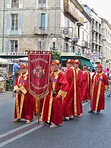La tenue des membres de la confrérie est de couleur sang et or, et leur devise est La passioun de bèn faire per lou plési d'où bèn béure, provençal pour « La passion de bien faire pour le plaisir du bien boire ».