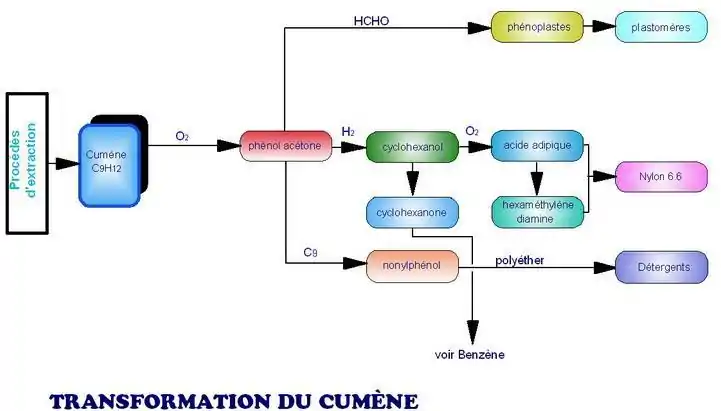 Quant au cumène, celui-ci peut conduire aux produits suivants :