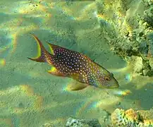 Le Mérou croissant jaune (Variola louti) est une espèce de poissons de la famille des Serranidae.