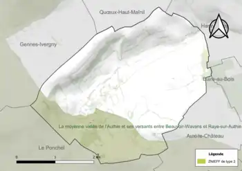 Le territoire communal comprend une ZNIEFF de type 2[Note 2] : la moyenne vallée de l’Authie et ses versants entre Beauvoir-Wavans et Raye-sur-Authie. Cette ZNIEFF de la moyenne vallée de l’Authie comprend une organisation paysagère régulière avec le fond de vallée humide, des versants calcaires, pentes boisées et hauteurs cultivées[11].