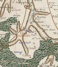 La carte de Cassini montre qu'au XVIIIe siècle, Vaux est une paroisse située sur la route allant du Câteau à Bohain.