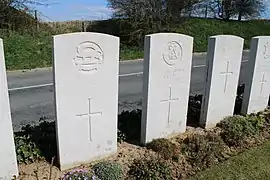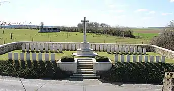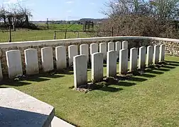 Le cimetière, entouré d'un mur de pierres sur 3 côtés, contient maintenant 62 sépultures de soldats britanniques.