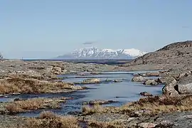La partie sud-ouest de l'île est montagneuse, le point culminant étant le Trollvasstinden de 803 mètres de haut. Le reste de l'île est plutôt plat et marécageux.