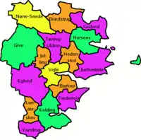 L'amt de Vejle était divisé en plusieurs municipalités :