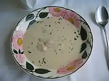 - (en) Cet article est partiellement ou en totalité issu de l’article de Wikipédia en anglais intitulé « Cream of mushroom soup » (voir la liste des auteurs).