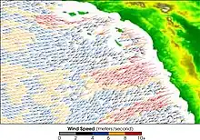 Bien que les vents aient souvent un caractère destructeur sur les infrastructures, ils présentent également certains avantages. Ils provoquent une remontée d'eau froide sous la couche superficielle de l'océan au large de la côté, faisant remonter de nombreux nutriments des profondeurs, ce qui profite finalement aux pêcheries locales. Au fur et à mesure que les vents soufflent sur l'océan, les températures de la surface de la mer chutent d'environ 4 °C et la concentration en chlorophylle dans les eaux de surface passe de négligeables à très actives avec plus de 1,5 milligramme par mètre cube en présence des vents.
