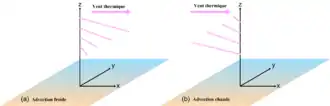 Si le vent géostrophique tourne avec l'altitude, il transporte de l'air d'une certaine température depuis une zone vers une autre qui a une température différente. Il s'agit d'advection chaude ou froide selon le cas. Ceci change la distribution thermique et naturellement crée un vent thermique.