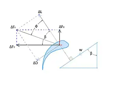Dans cette théorie, un élément infinitésimal () est pris à une distance du pied de la pale et toutes les forces agissant sur l'élément sont analysées pour obtenir une solution. On suppose que l'écoulement à travers chaque section élémentaire radiale est indépendant de l’écoulement à travers les autres éléments[1],[3].