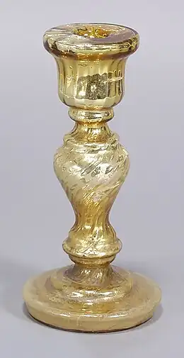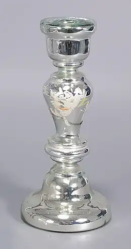 Le verre mercuré est un verre soufflé à double paroi dont l'intérieur a été rempli d'une solution de nitrate d'argent avant d'être scellé[6]. L'extérieur de ces objets était souvent peint, doré ou argenté, décoré de motifs floraux.