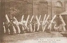 Les maîtres verriers d'Aniche hormis ceux de la verrerie d'en haut ont assigné par devant le conseil des prud'homme 380 ouvriers qui se n'étaient présentés à leurs poste de travail ce dimanche de . Un cortège part à pied d'Aniche vers Douai chantant la carmagnole et l'internationale et portant une banderoleouvriers assignés au prud'homme pour le repos du dimanche. Les Maîtres-verriers réclamant 471 francs de dommages et intérêts par équipe[14].