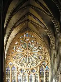 La verrière occidentale de la cathédrale de Metz occupe les deux tiers supérieurs de la façade de la cathédrale Saint-Étienne de Metz, au-dessus du portail principal. Composée d’une grande rosace et de baies lancéolées, elle fut créée en 1384 par le maître-verrier Hermann de Münster (c.1330-1392).