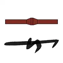 Il représente un verrou, généralement fabriqué en bois qui était employé pour les meubles. Ce dispositif était inséré à travers trois anneaux fixés à l'extérieur des battant. Les éléments centraux étaient conçus pour bloquer le mécanisme dans les anneaux de manière à suffisamment coulisser pour libérer un anneau et donc déverrouiller la porte tout en restant coincés entre les deux anneaux restant. Il est translittéré s (z sous l'Ancien Empire) ou sw.