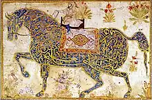 Le Coran utilise néanmoins des métaphores et des comparaisons pour évoquer Allah. Il évoque ses mains, sa face... « tandis que le non moins célèbre Verset du trône présente Dieu sur son trône céleste »[3]. Kursî désigne le « Siège ou trône de Dieu ». Il est particulièrement présent dans les inscriptions anciennes. Il désigne aussi, par la suite, le pupitre servant de support au Coran dans les mosquées[4]. Ce terme est aussi utilisé, dans le Coran, pour évoquer le trône de Salomon[5].