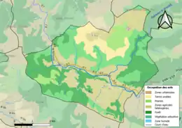 L'occupation des sols de la commune, telle qu'elle ressort de la base de données européenne d’occupation biophysique des sols Corine Land Cover (CLC), est marquée par l'importance des forêts et milieux semi-naturels (50,3 % en 2018), néanmoins en diminution par rapport à 1990 (54 %). La répartition détaillée en 2018 est la suivante : zones agricoles hétérogènes (34,5 %), forêts (27,4 %), milieux à végétation arbustive et/ou herbacée (22,9 %), terres arables (8,2 %), prairies (7 %)[22].