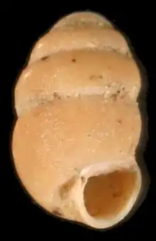 La coquille est très petite, obtuse, avec des striations espacées. Elle est de couleur marron violacée[1]. Elle a une ouverture semi-circulaire, presque quadratique, sans aucune bordure. Le péristome est très peu étendu, aussi fin qu'une lèvre, bordé de bleu marine[1].