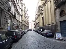 La rue est le siège de deux quotidiens de la ville, Il Roma et Il Mattino.