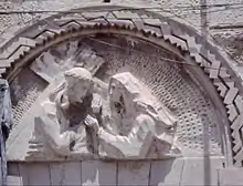 Ce petit oratoire est surmonté d'un panneau entouré de frises (sculptées par l'artiste polonais Zieliensky) représentant deux semelles de sandales et symbolisant le lieu de la rencontre.