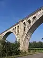 Certaines fondations ont plus de 8 m de profondeur. La naissance des arcs se fait à 1,10 m au-dessus des fondations ; les tympans de ce viaduc sont évidés au moyen de trois ouvertures de 2,50 m de large séparés par des piliers d'un mètre de large.