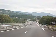 Vue des tabliers du viaduc depuis la chaussée dans le sens Macon - Genève.
