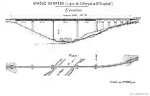 Ce premier ouvrage d'art dit viaduc, ou pont[2], du Credo est prévu pour le franchissement du Rhône par la « ligne de Bellegarde à Saint-Gingolph » de la Compagnie des chemins de fer de Paris à Lyon et à la Méditerranée (PLM). Le viaduc est dessiné par les ingénieurs Moris et Ruelle et la construction revient à la société Joret et Compagnie qui ouvre le chantier en 1875 et le termine en 1879-1880[3].