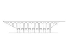Il mesure 292 mètres de long et culmine à 62 mètres de hauteur[5]. Sa portée principale est de 15,50 m[5]. Il comprend deux niveaux avec neuf arches de 13,47 m d'ouverture au niveau inférieur et quatorze arches de 15,50 m au niveau supérieur. Les piles ont une épaisseur variant entre 11,16 et 19,36 m[5].