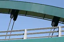 L’arc métallique axial est relié au tablier par une double nappe de neuf haubans (ou suspentes) réalisant une suspension centrale dans l’axe de l’autoroute entre les deux sens de circulation.
