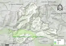 L'occupation des sols de la commune, telle qu'elle ressort de la base de données européenne d’occupation biophysique des sols Corine Land Cover (CLC), est marquée par l'importance des forêts et milieux semi-naturels (58,4 % en 2018), une proportion sensiblement équivalente à celle de 1990 (58,8 %). La répartition détaillée en 2018 est la suivante : forêts (58,4 %), prairies (22,6 %), zones agricoles hétérogènes (16,3 %), terres arables (2,1 %), zones urbanisées (0,7 %)[27]. L'évolution de l’occupation des sols de la commune et de ses infrastructures peut être observée sur les différentes représentations cartographiques du territoire : la carte de Cassini (XVIIIe siècle), la carte d'état-major (1820-1866) et les cartes ou photos aériennes de l'IGN pour la période actuelle (1950 à aujourd'hui)[Carte 2].