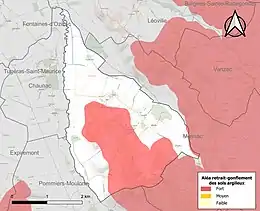 Le retrait-gonflement des sols argileux est susceptible d'engendrer des dommages importants aux bâtiments en cas d’alternance de périodes de sécheresse et de pluie. 37,6 % de la superficie communale est en aléa moyen ou fort (54,2 % au niveau départemental et 48,5 % au niveau national). Sur les 99 bâtiments dénombrés sur la commune en 2019, 43 sont en aléa moyen ou fort, soit 43 %, à comparer aux 57 % au niveau départemental et 54 % au niveau national. Une cartographie de l'exposition du territoire national au retrait gonflement des sols argileux est disponible sur le site du BRGM[12],[Carte 2].
