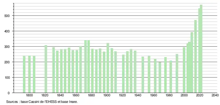 571 hab. (2021 en augmentation de 16,06 % par rapport à 2015)