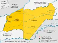 - La préfecture apostolique de Vichada est érigée le 7 avril 1956 par la constitution apostolique Cum Apostolis Christus du pape Pie XII en prenant une partie du territoire du vicariat apostolique de Villavicencio (aujourd'hui archidiocèse de Villavicencio). La mission d'évangélisation est confiée aux montfortains[1]. Il cède une portion de territoire le 30 novembre 1996 pour l'érection du vicariat apostolique d'Inírida[2]. La préfecture apostolique est supprimée de facto le 22 décembre 1999 car son territoire est divisé en deux pour créer les vicariats apostoliques de Puerto Carreño[3]et Puerto Gaitán[4].